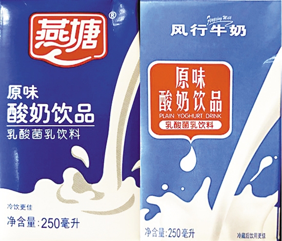■燕塘乳业、风行乳业的产品对比图。来自判决书
