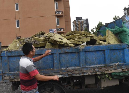 散落在小区里的保温材料被清理走。新京报记者吴宁摄