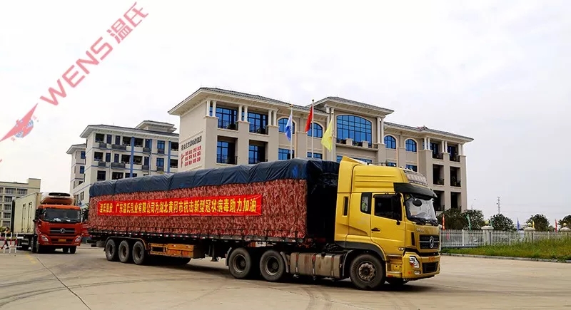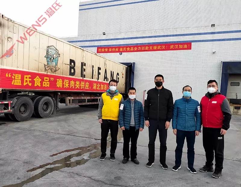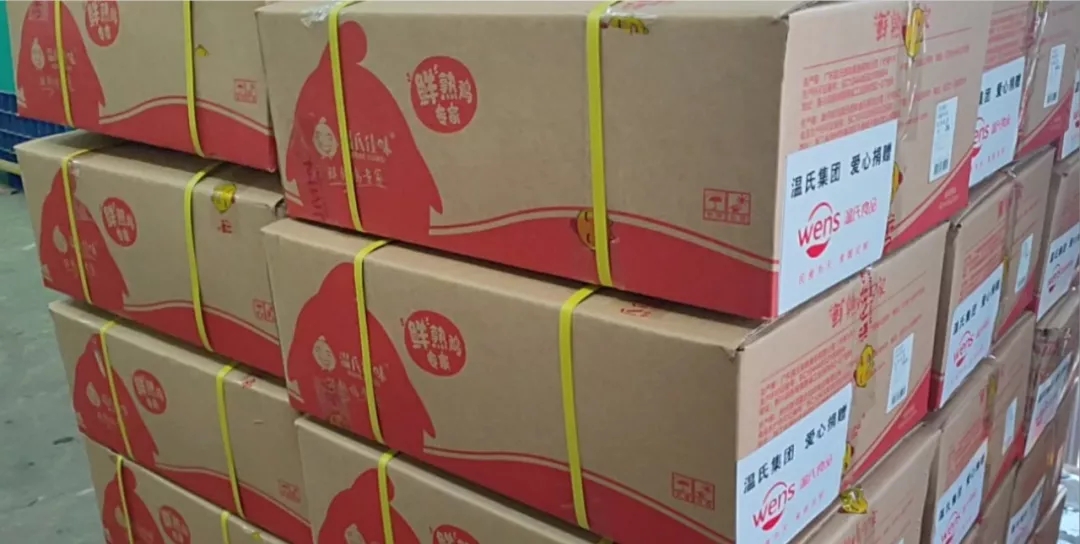 1月29日,温氏股份决定向湖北抗击疫情相关群体捐赠首批30万只熟鸡、2万包鸡汤,总价值1500万元,帮助湖北人民守卫健康,守卫湖北。决定发出之后,为确保捐赠物资尽快送到湖北,温氏佳味公司马力全开,立刻启动熟食品生产、物流运输等相关工作。