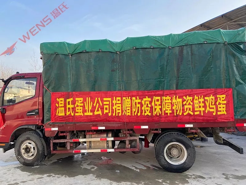 1月31日上午,为支援湖北新型冠状病毒感染的肺炎疫情防控工作,温氏蛋业公司光一蛋鸡场向湖北孝感分水镇捐赠蛋业鲜鸡蛋100箱(2.15吨),总价值2.6万元。