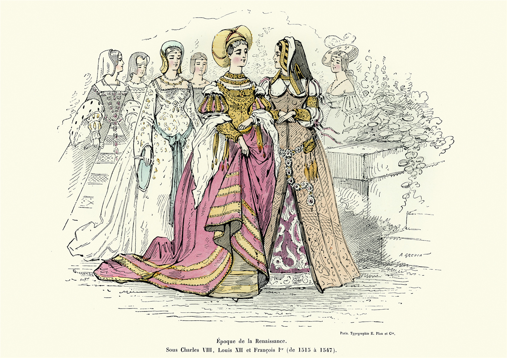 在14世纪末至文艺复兴时期,人们反从中世纪对人体美避而不谈的禁欲阴影中走出来,开始突出曲线美,服饰极尽奢华、繁复,也就是现在所说的哥特式风格服装,哥特式的服饰特别重视外表的浮雕效果和线条。