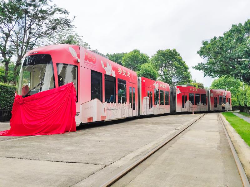 广州最美7.7公里有轨电车再添新景观。6月28日下午,“中共三大主题列车”在磨碟沙公园有轨电车车辆段发布,有轨电车变身“流动的党史学堂”。据了解,本次“中共三大主题列车”将上线运营3个月,想打卡体验的乘客要抓紧时间了。