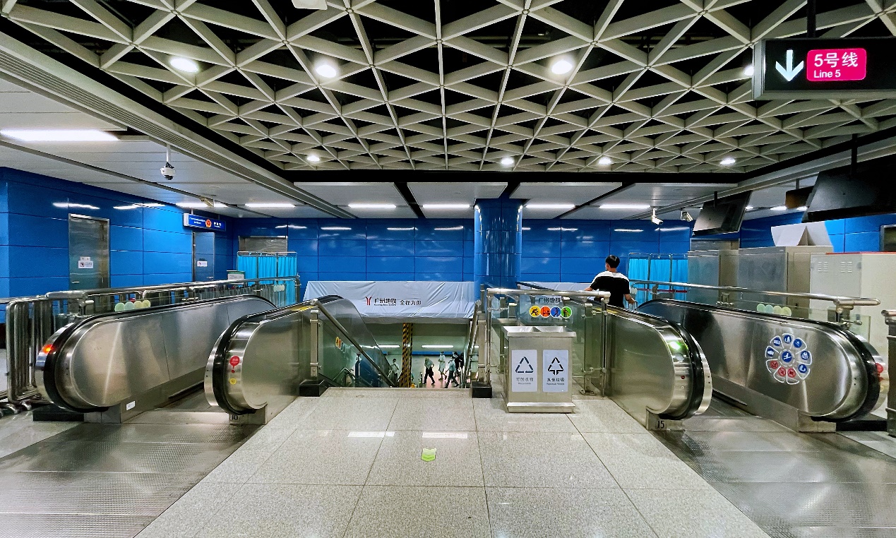 广州地铁提醒,由于车站布置的客观性,现阶段珠江新城站东西两端五号线的升降梯与三号线的升降梯只能出站不能换乘,所以需换乘的乘客可以搭乘两端的扶梯到站厅进行换乘。利用地铁出行过程中如需帮助,可及时联系车站工作人员。
