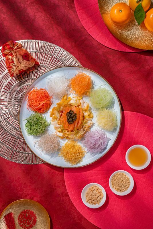 广州富力丽思卡尔顿酒店丽轩中餐厅作为连续四年上榜广州米其林一星的精致粤菜食府,其中餐行政总厨黄尚烽在精选食材的同时,以广府地区传统文化为核心,打造了数款“如虎添翼新年佳宴”套餐,里面有多个特色菜,如风生水起响螺捞起帝皇鲑鱼皮、鸿运片皮金猪、金沙汁焗龙虾等。