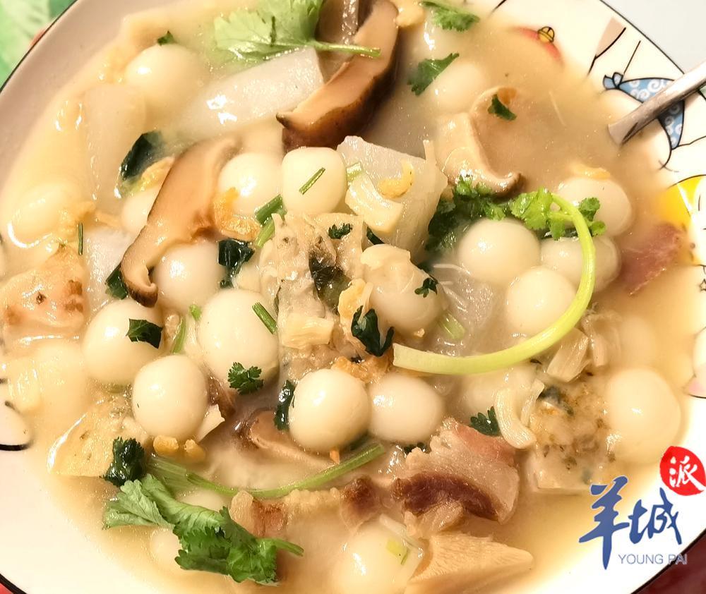 平时吃甜汤圆吃多了,改吃一顿富有侨乡特色的咸汤圆会带来一番新鲜的感觉,这种汤圆体积较小,中间无馅,靠汤入味,而实心丸子非常有嚼头。