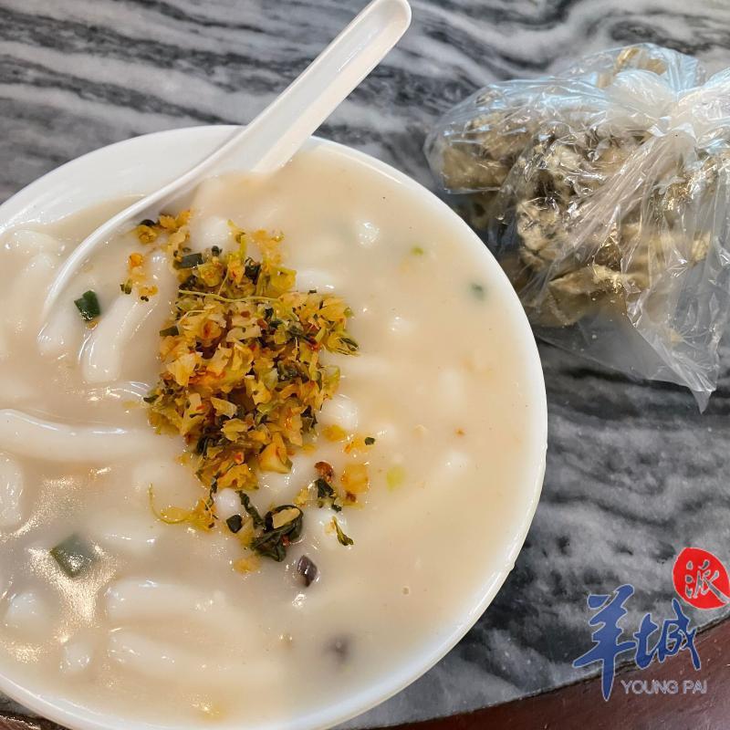 小份10元,大份12元,濑粉外表普通,但精华食材往往隐藏在濑粉的汤底里。猪油渣、香菇、虾米等食材是一碗传统濑粉必备用料,食材与肉骨汤经过熬制后,汤底鲜味逐渐提升。