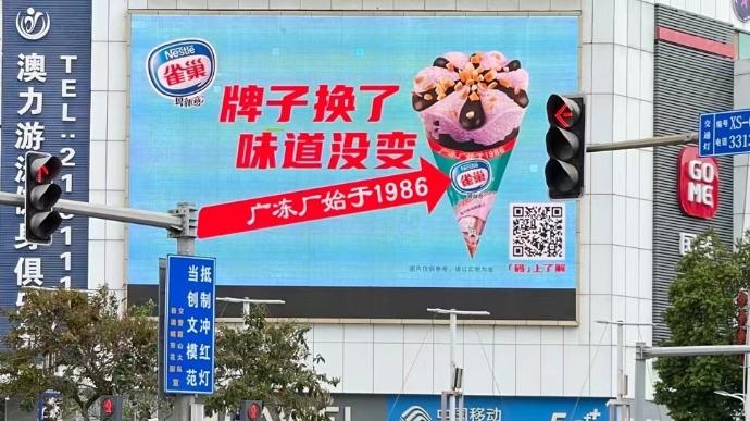 炎炎夏日里,尝上一口雪糕往往是街坊们最解渴、最享受的时刻。近日,一则充满儿时回忆的广告亮相于广东各地的大小街头,内容显示“牌子换了,味道没变”“广冻厂始于1986年”,这让街坊们恍然间意识到,原来一路陪伴不少广东人成长的老味道,在去年因为商标使用权到期,无奈挥别了使用了20多年的老牌子,而在今年,他们只能以新面貌——雀巢“粤新意”,来为广东人生产他们从小吃到大的雪糕。