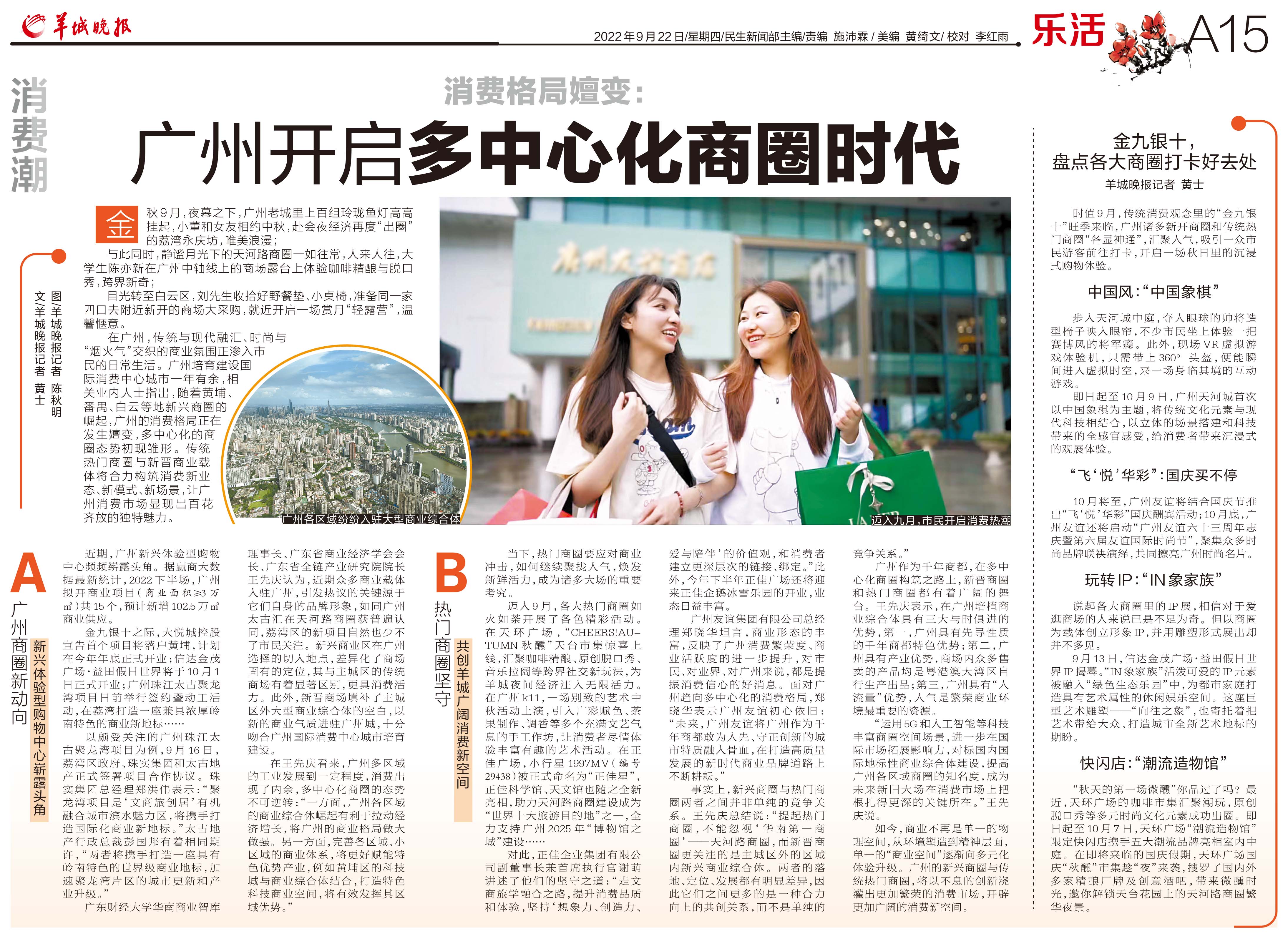 时值9月,传统消费观念里的“金九银十”旺季来临,广州诸多新开商圈和传统热门商圈“各显神通”,汇聚人气,吸引一众市民游客前往打卡,开启一场秋日里的沉浸式购物体验。