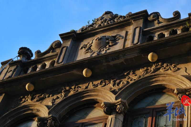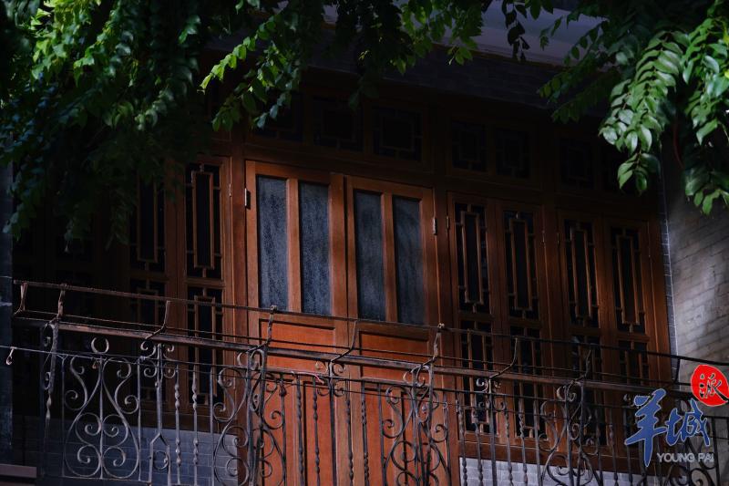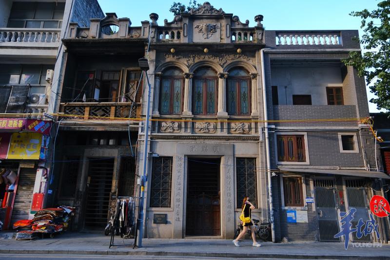 位于宝源路141号的明勤第是整条街为数不多的中西合璧建筑。它保留着西关传统的趟栊门,但是二楼立面却有着鲜明的巴洛克风格,带有罗马柱、铁艺装饰、古典山花等西方建筑元素,雕刻华丽。