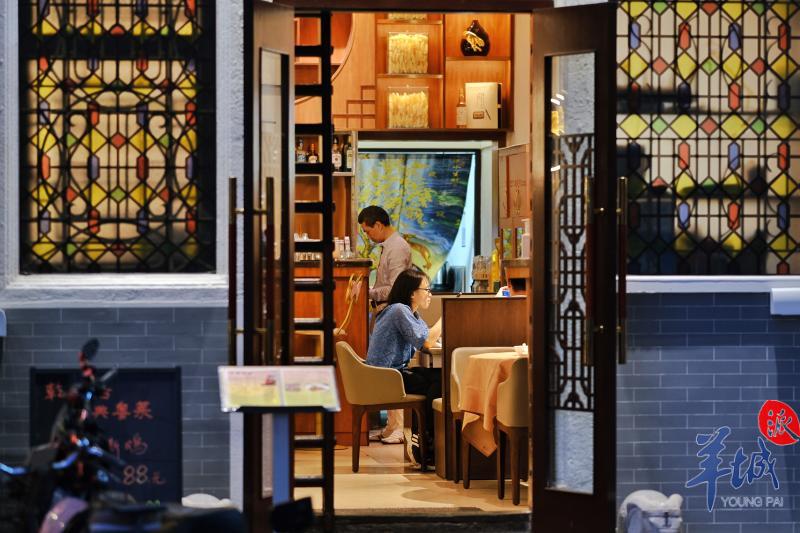 而在宝源路101号的另一栋民国老宅则完美演绎了东西方美学平衡:大宅正面是欧陆式立体前凸造型,同时又大量采用了中式的条形石框满洲窗。这栋大宅始建于1910年前后,经过多次易手,如今成为了荔湾区旧屋改建的经典范例。