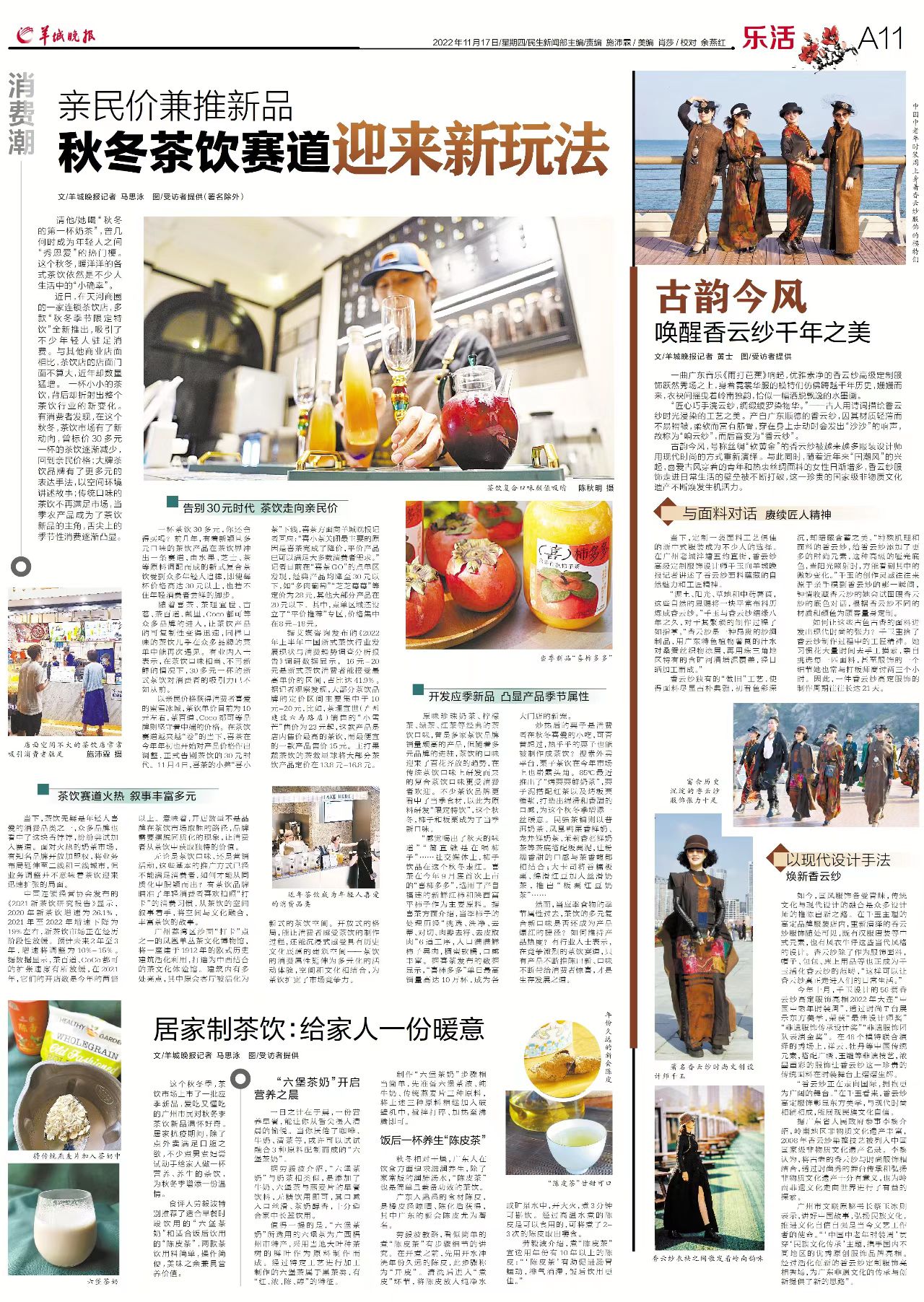 近日,在天河商圈的一家连锁茶饮店,多款“秋冬季节限定特饮”全新推出,吸引了不少年轻人驻足消费。与其他商业店面相比,茶饮店的店面门面不算大,近年却数量猛增。一杯小小的茶饮,背后却折射出整个茶饮行业的新变化。有消费者发现,在这个秋冬,茶饮市场有了新动向,曾标价30多元一杯的茶饮逐渐减少,回到亲民价格;大牌茶饮品牌有了更多元的表达手法,以空间环境讲述故事;传统口味的茶饮不再满足市场,当季农产品成为了茶饮新品的主角,舌尖上的季节性消费逐渐凸显。