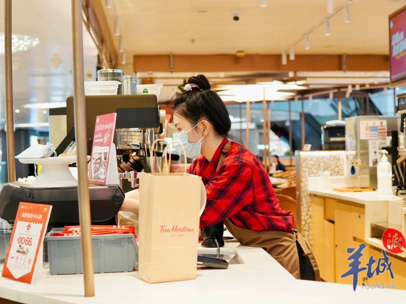 11时,在广州天河城,一家扶手电梯旁的咖啡店正式恢复堂食。市民林先生点了一杯鲜萃咖啡和现做餐食,他告诉记者:“平日我最喜欢的工作状态就是在这里边喝咖啡边办公,能给我不少工作的灵感。”