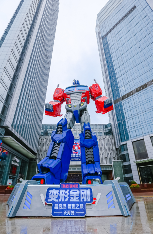 擎天柱、霸天虎、大黄蜂……即日起至2023年1月4日, 来自影视里塞伯坦星球的变形金刚亮相广州天河城, 1:1 原版还原的博派领袖擎天柱伫立在户外北广场,炫酷展陈唤起市民游客的童年回忆。