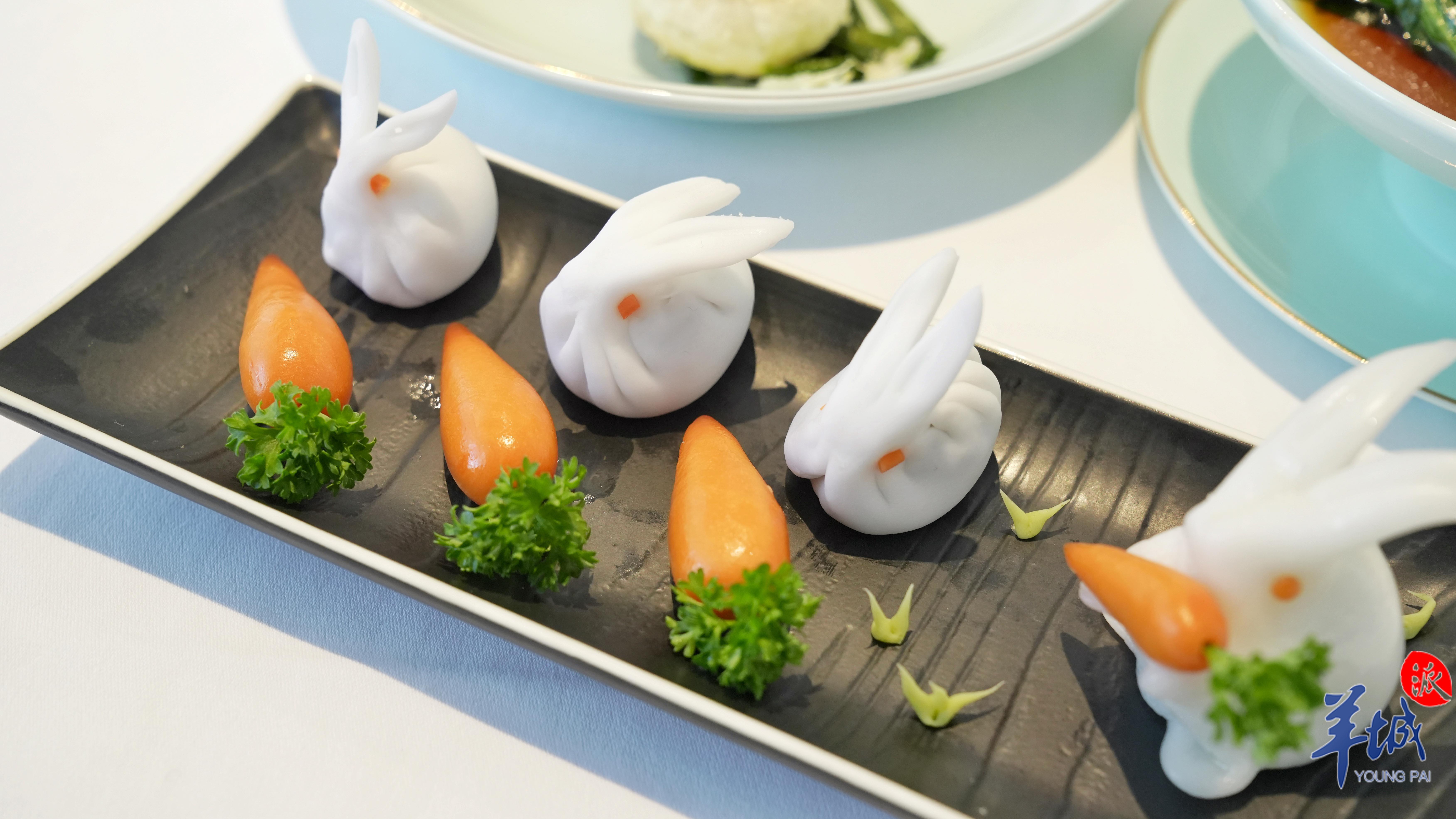 恰逢农历兔年新春来临,谭广燐还带来了“彩蛋”,现场教授制作象形白兔饺。将虾饺皮擀薄,包制馅料,捏13道褶纹,用部分虾饺皮制作出兔耳朵,以胡萝卜点睛,一只栩栩如生的象形白兔饺在谭广燐手中制作完成。