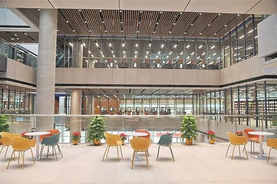 宏伟大气的整体造型下典藏云集,“书香番禺”再翻新篇,1月18日,在春节来临之际,番禺区图书馆新馆采取部分试运行的方式开门迎客。新馆总建筑面积4万多平方米,总投资5亿元,配置1054组智能书架,可实现图书盘点自动化,找书精准导航、一次性借还书操作等“黑科技”功能,定位国家大型一级图书馆。从此,番禺区的地标性建筑名单新添一员,番禺区的文化服务网络新添一格。