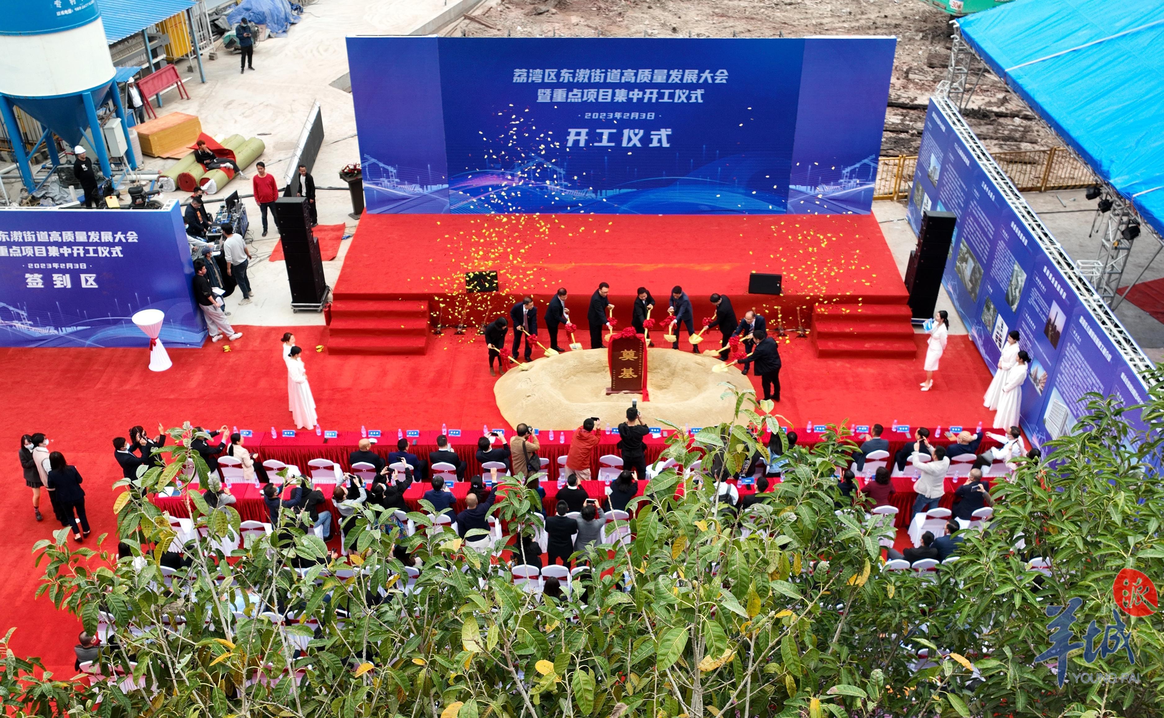 东漖旧改项目部的机器在忙碌地运转,轨道交通十号线广钢新城车辆段工程在如火如荼地进行,慧心大健康产业园项目部正式揭牌……2月3日,广州市荔湾区东漖街道举行高质量发展大会暨重点项目集中开工仪式,东漖街道32个重点项目正式启动“加速键”,预计项目建成后总产值达千亿元。