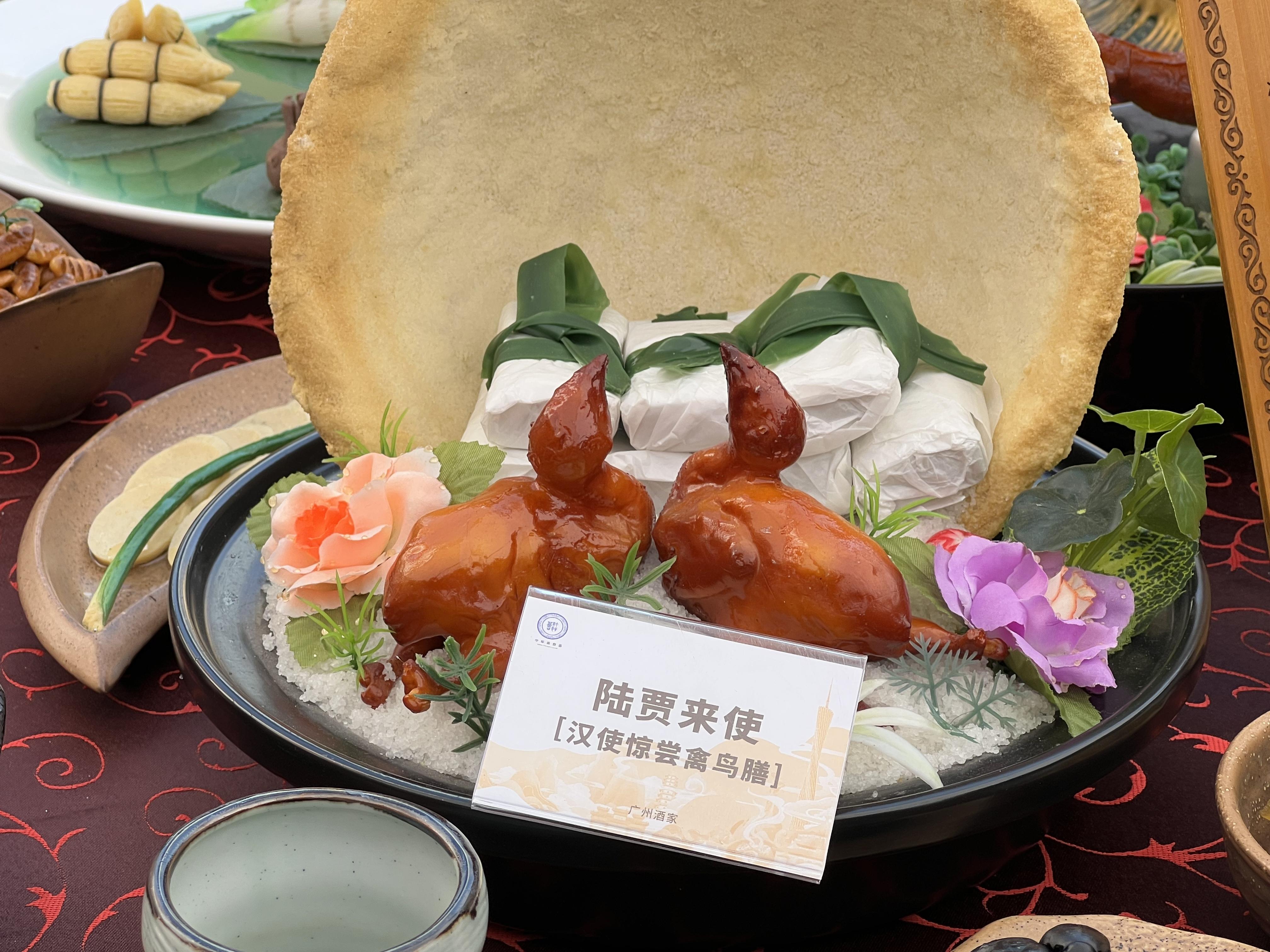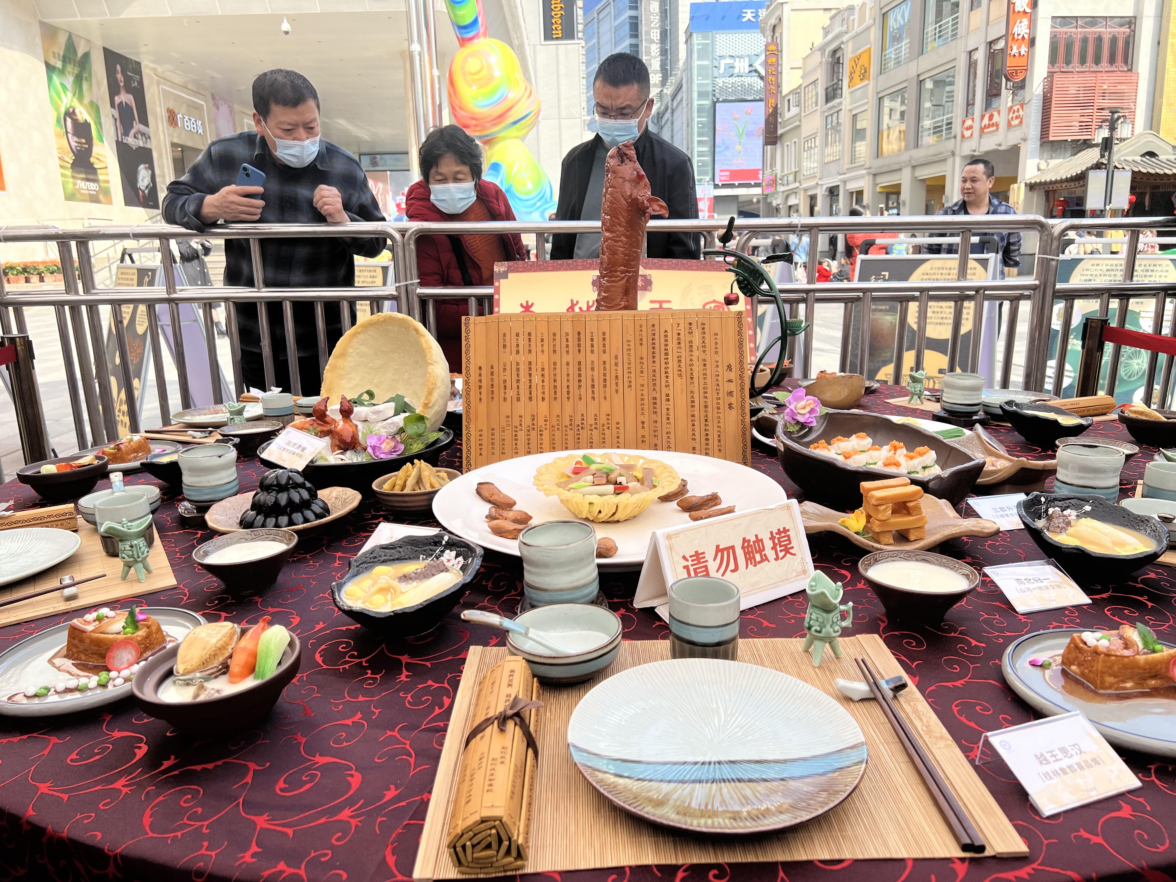 为了让“南越王宴”更真实地呈现,广州酒家还特意把“南越王宴”的菜式仿制品摆放在活动现场,吸引了大量的游客驻足欣赏。