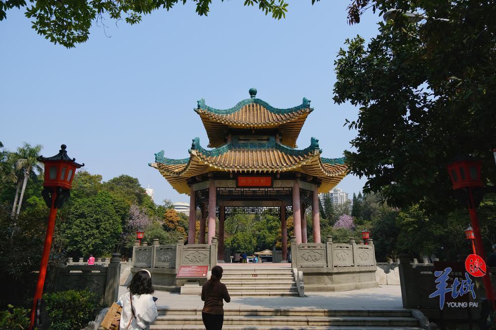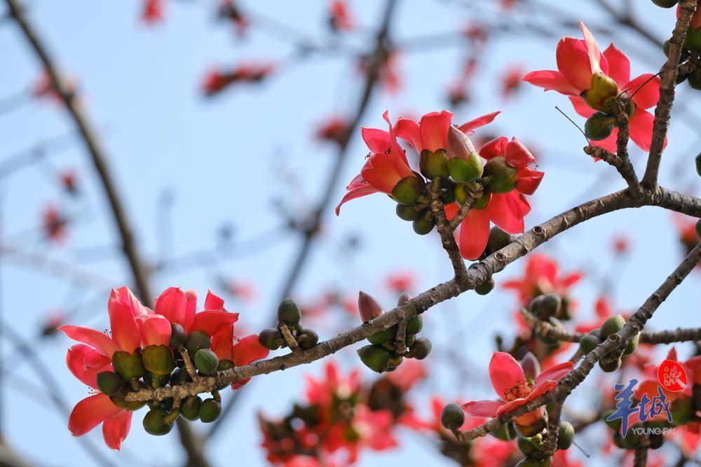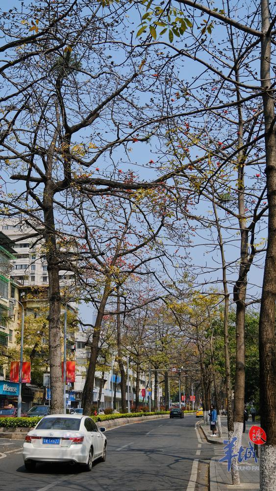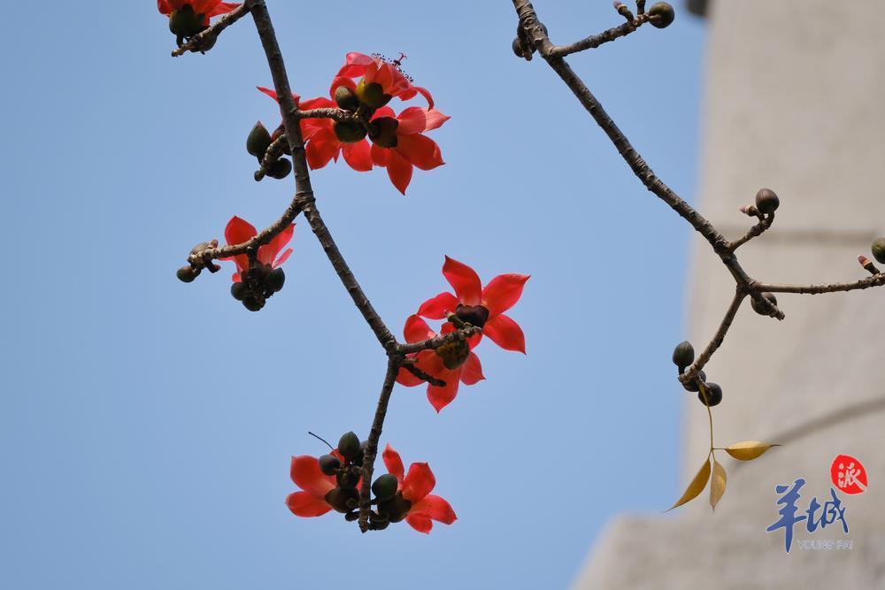 烈士英气永不磨灭,在烈士陵园之外,地铁站、公共道路都以“陵园”二字命名。沿着烈士陵园地铁站往前步行,数株木棉树整齐排列在陵园西路。未到盛开之时,个别木棉树已开出花蕾,行人和车在木棉树下穿梭而行,木棉点点红,羊城春日,鲜红璀璨。