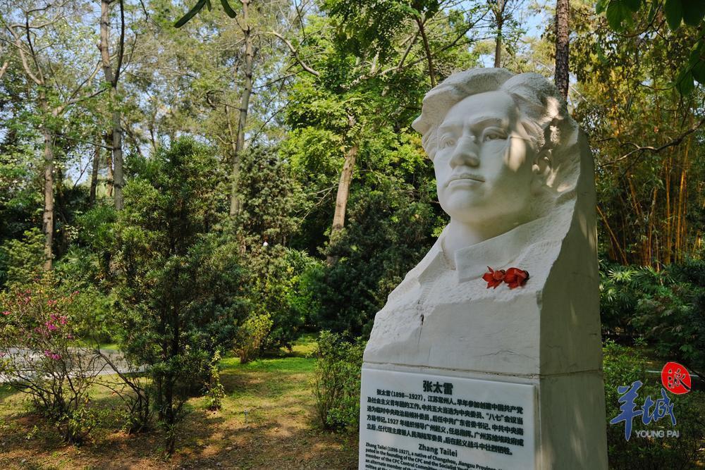 广州起义领导人雕像纪念广场的木棉树开出春天之花,张太雷、苏兆征、彭湃等共九位参与广州起义的主要领导人的鲜活雕像在此竖立。木棉花蕾随风飘摇,轻轻掉落在先烈的雕像上,鲜红的花瓣映衬着米白色的雕像,向后人诉说着先烈纯洁的革命情怀,流淌为革命事业奉献的火热鲜血。而含苞待放的木棉静待时机,在盛开绽放之日,为先烈英雄坚守这份革命浩气。