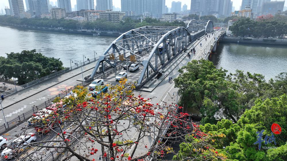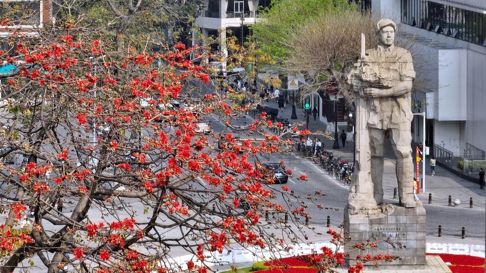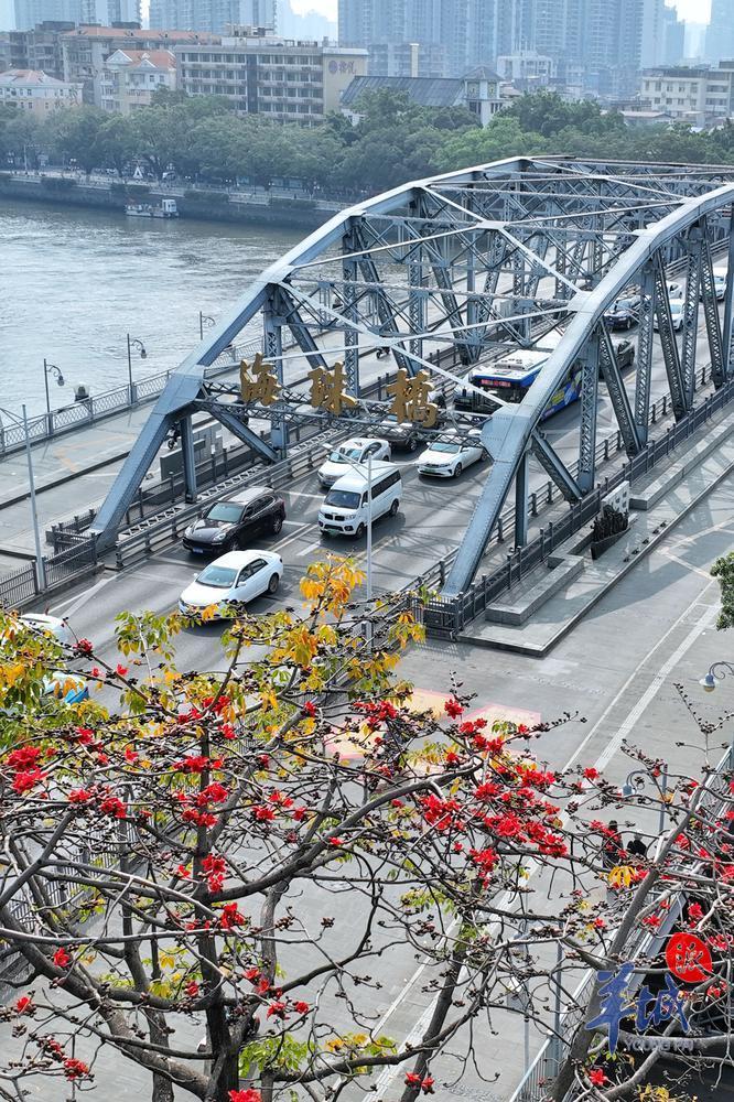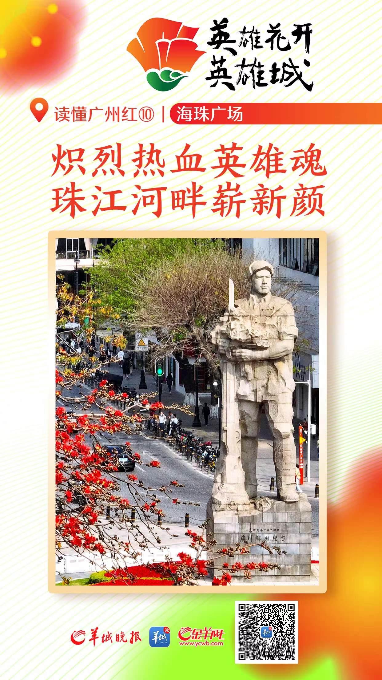 有着90年历史的海珠桥串联珠江南北两岸,是连接广州越秀区、海珠区这两个老城区的重要链条。位于珠江北岸的海珠广场,数株木棉在春日暖阳绽放,热情似火的花蕾犹如烈士鲜血,记录先辈们曾在海珠广场留下的足迹,点燃先辈们的英勇之魂。