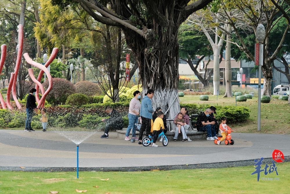 耍太极、骑单车、漫步赏花、孩童嬉戏……春天的海珠广场闲适宜人。总面积约4.2公顷的海珠广场绿草如茵,种植有棕榈、红棉等乔木,整个广场富有亚热带特色。