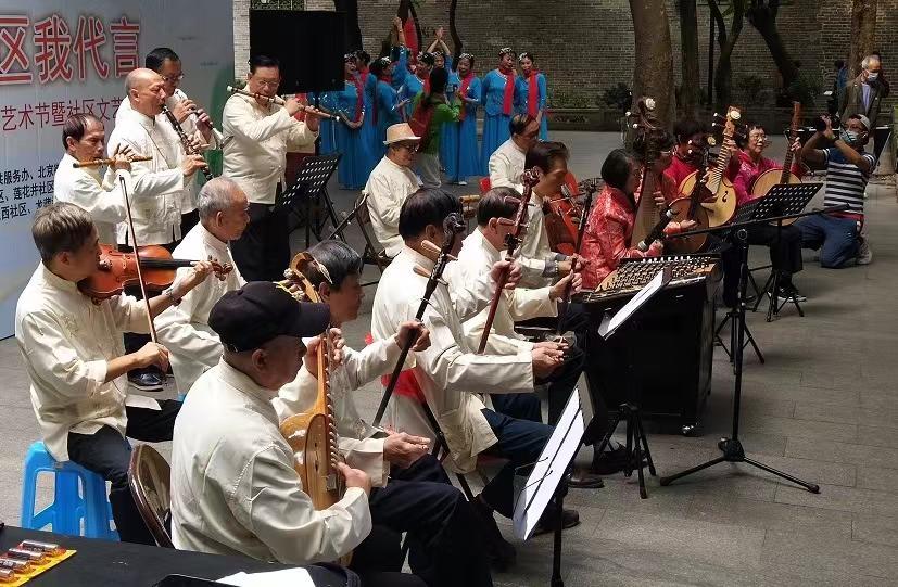 来自越秀区的北京街民乐社是一个民间音乐集体,由北京街一群热爱音乐的退休人员组成。领队周双喜曾经在广东音乐曲艺团工作,是国家二级演奏员,除熟练掌握多种乐器演奏技巧外,还身怀“锯琴”演奏的独门绝技。他演奏时,双腿膝盖夹住锯把,通过左手将锯琴弯曲成差异的s弧度,右手持马尾弓在锯背相应的部位上下拉动(或敲击)。锯琴有着奇特的音色,高音时像口笛声,中音像胡琴声,低音又像大提琴声。锯是钢板,没有音高,就要靠本身平时的音乐素养、音乐履历、操纵履历探索出来,极具难度。
