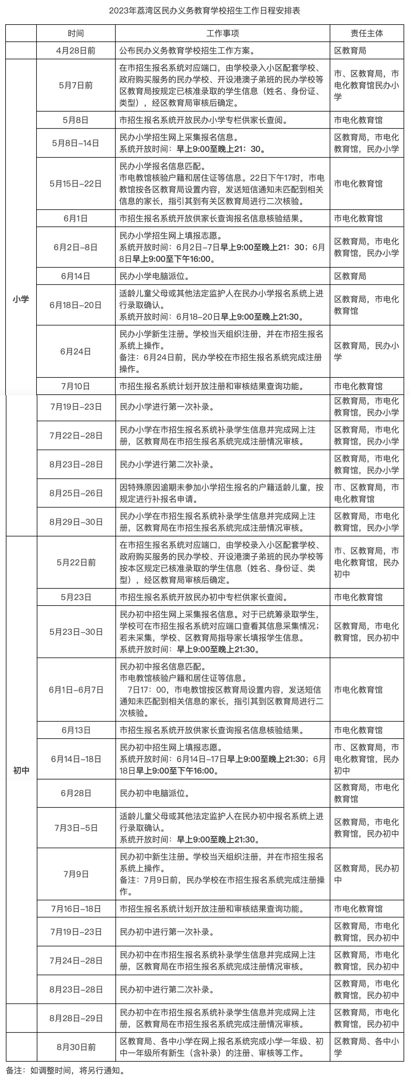 附件2:2023年荔湾区民办义务教育学校招生工作日程安排表