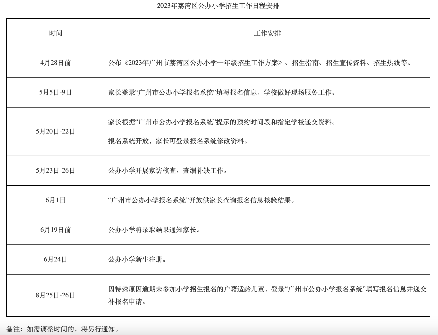 附件2:2023年荔湾区公办小学招生工作日程安排
