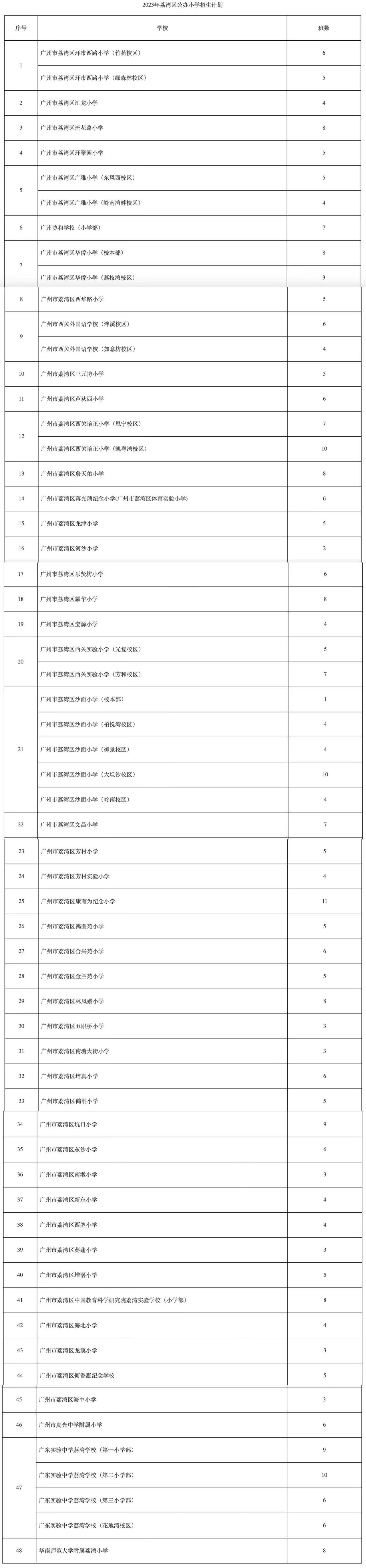 详细信息可点击链接查阅:2023年广州市荔湾区公办小学一年级招生工作方案