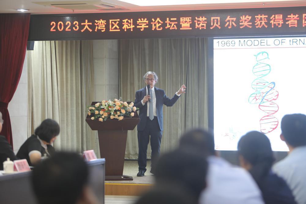2023年5月22日,越秀区迎来了一位特殊的客人——2013年诺贝尔化学奖得主迈克尔·莱维特 (Michael Levitt)教授。此次诺贝尔奖获得者携团队走进越秀区,是由大湾区科学论坛组委会组织的2023大湾区科学论坛的重要行程,调研越秀区情、产业发展、营商环境,谋划合作项目落地。该论坛是由“一带一路”国际科学组织联盟发起,以科学技术部、中国科学院、中国工程院、中国科学技术协会为指导单位,广东省人民政府主办的粤港澳大湾区最高级别的科学盛会。