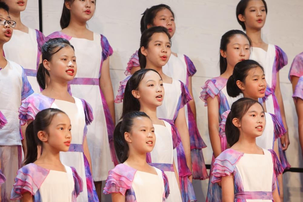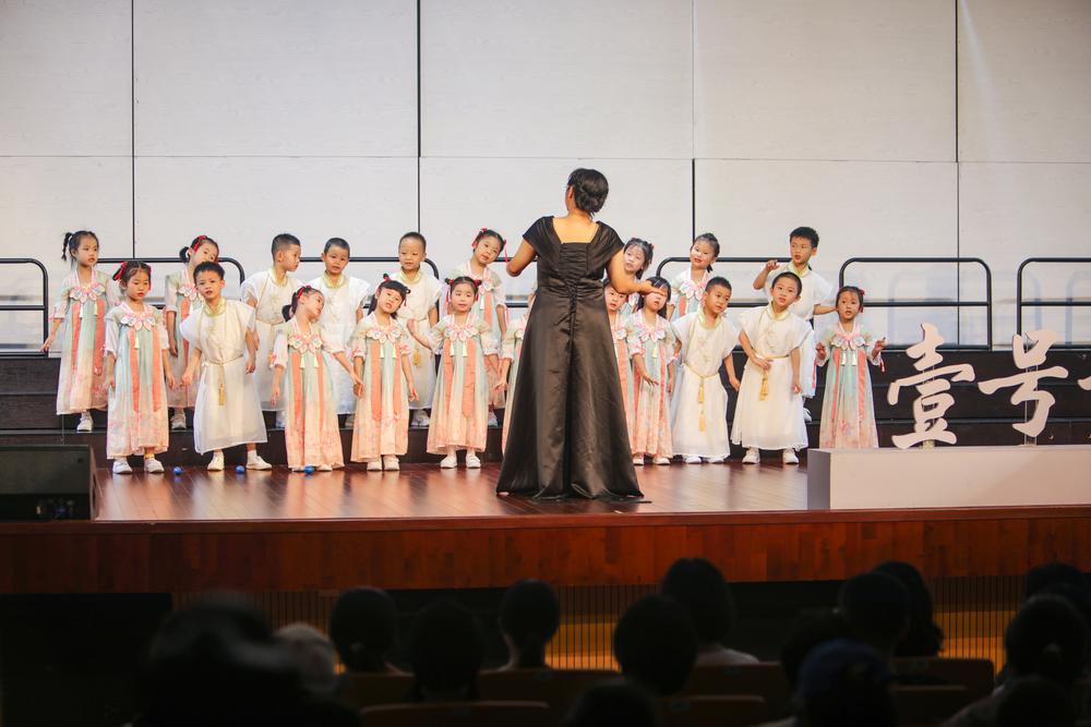 音乐会从孩子们最熟悉的《静夜思》《春晓》等作品开始,再到描写大自然景色的《渔歌子》《行香子》,还有表达诗人细腻情感的《越人歌》《山行》。孩子们的歌声时而灵动活泼,时而优美宁静,时而大气磅礴,让全场观众沉浸在古诗词作品的美妙和声中,体验音乐给人的幸福与美好。