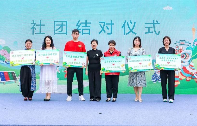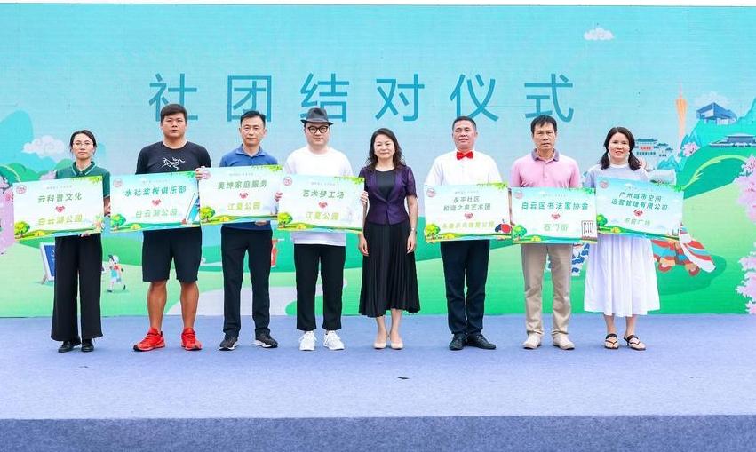 现场,白云区“绿色守护者”科普志愿服务队、白云区未成年人保护协会、白云区未保救助中心、三元里醒狮武术团、三元里原创手工街、绣形绣色广绣艺术馆、广州城市空间运营管理有限公司、白云区书法家协会、和谐之声艺术团、艺术梦工场、奥绅家庭服务、水社桨板俱乐部、云科普文化13个社团,与白云湖公园、江夏公园、白云禁毒主题公园、白云儿童公园,还有规划中的夏茅香芒古树公园等场地结对,将常态化开展文化艺术活动。