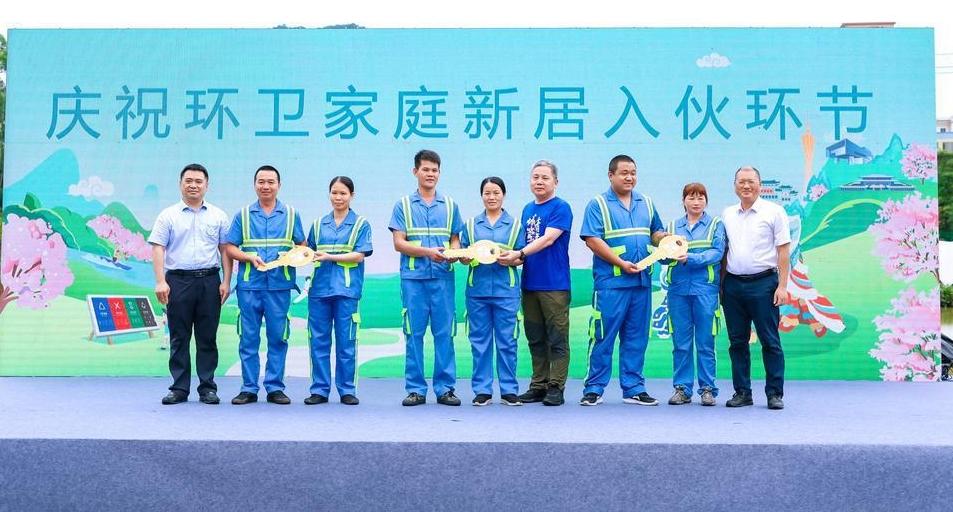 绿美白云生态嘉年华启动仪式上,12位环卫工人代表获颁授白云区环卫工人之家公寓(简称“环卫公寓”)的钥匙,喜提新居。