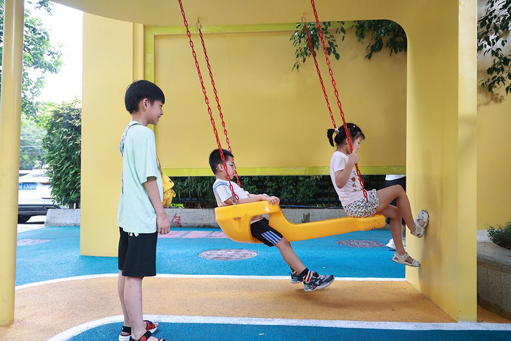 二是进行全街儿童友好配套设施建设。在全街选取老旧小区、居民院落空地进行升级改造,增加配备儿童滑梯、攀爬网、秋千等游乐设施,打造一批全龄友好公共休闲区。