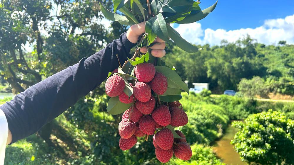 记者在现场了解到,“帝鼎荔枝”较耐储存,能够在采摘数天后果壳不变色,在长途运输中能保持果实的鲜美,颇受消费者喜爱,除了在本地售卖,还远销至新加坡等地。
