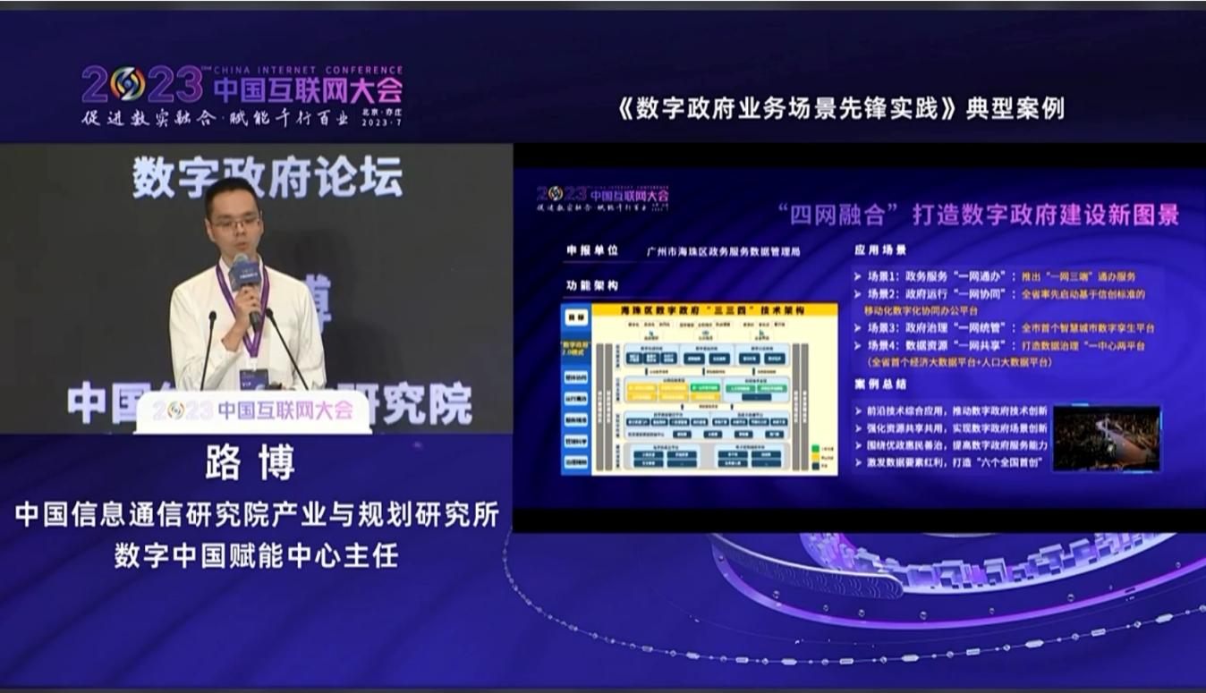 会上,由工业和信息化部直属科研事业单位中国信息通信研究院联合新华社中国经济信息社汇编整理的《数字政府蓝皮报告——业务场景视图与先锋实践(2023年)》正式发布,海珠区《“四网融合”打造数字政府建设新图景》案例获高度评价。