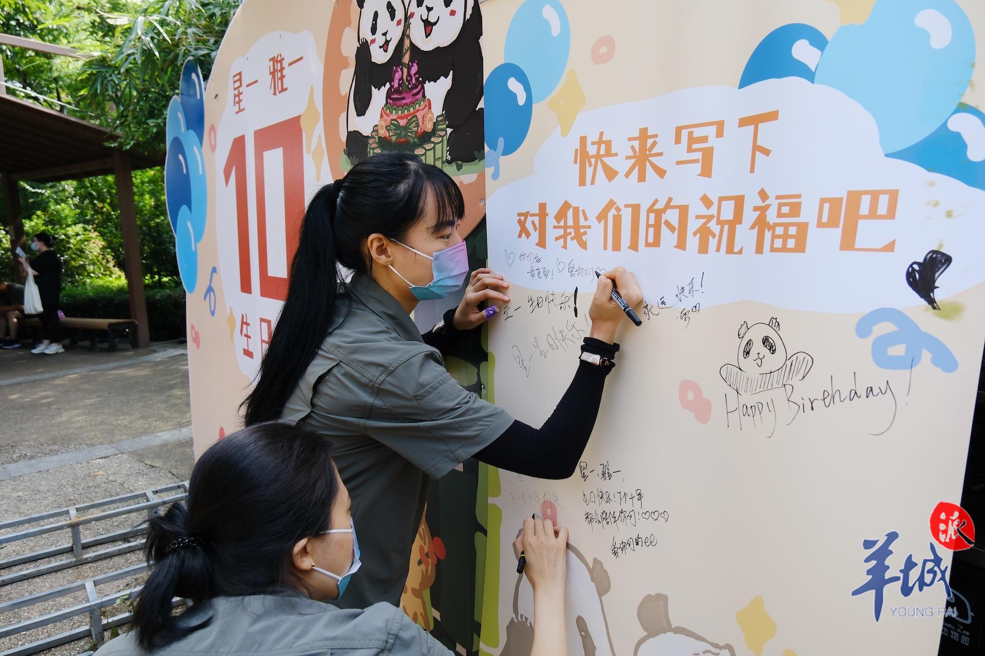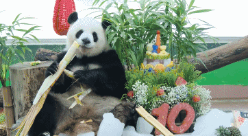8月23日,广州动物园为两位“顶流”举办了特别的生日会,庆祝踏入“熊生”的第一个十年。生日会上,广州动物园保育员结合广府特色,以竹编箩筐为“星一”“雅一”送上“一盅两件”。