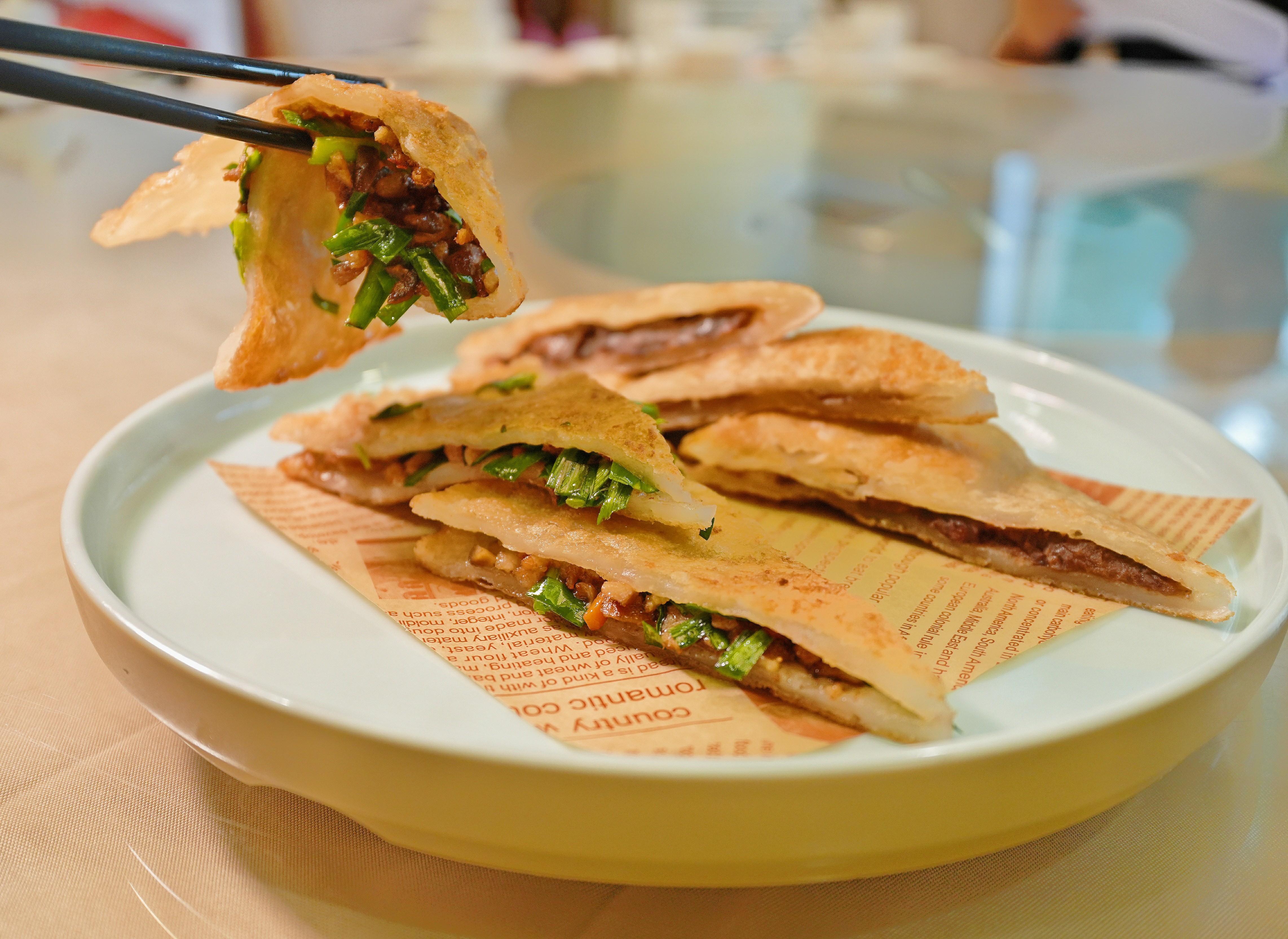 炸至金黄的酥皮包裹着红豆馅和肉馅,半甜半咸的口感,让人越吃越上瘾。