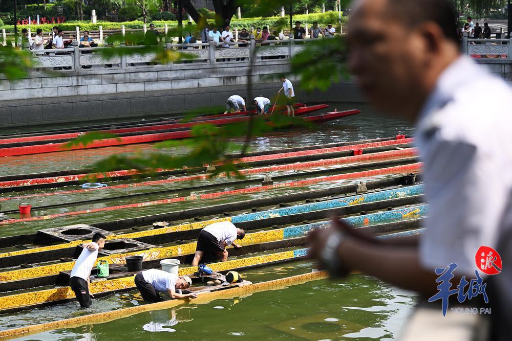 据悉,今年猎德村共有12条龙舟起龙,包括红龙、花龙、五色龙,以及一条历史悠久的“冠军”金龙。