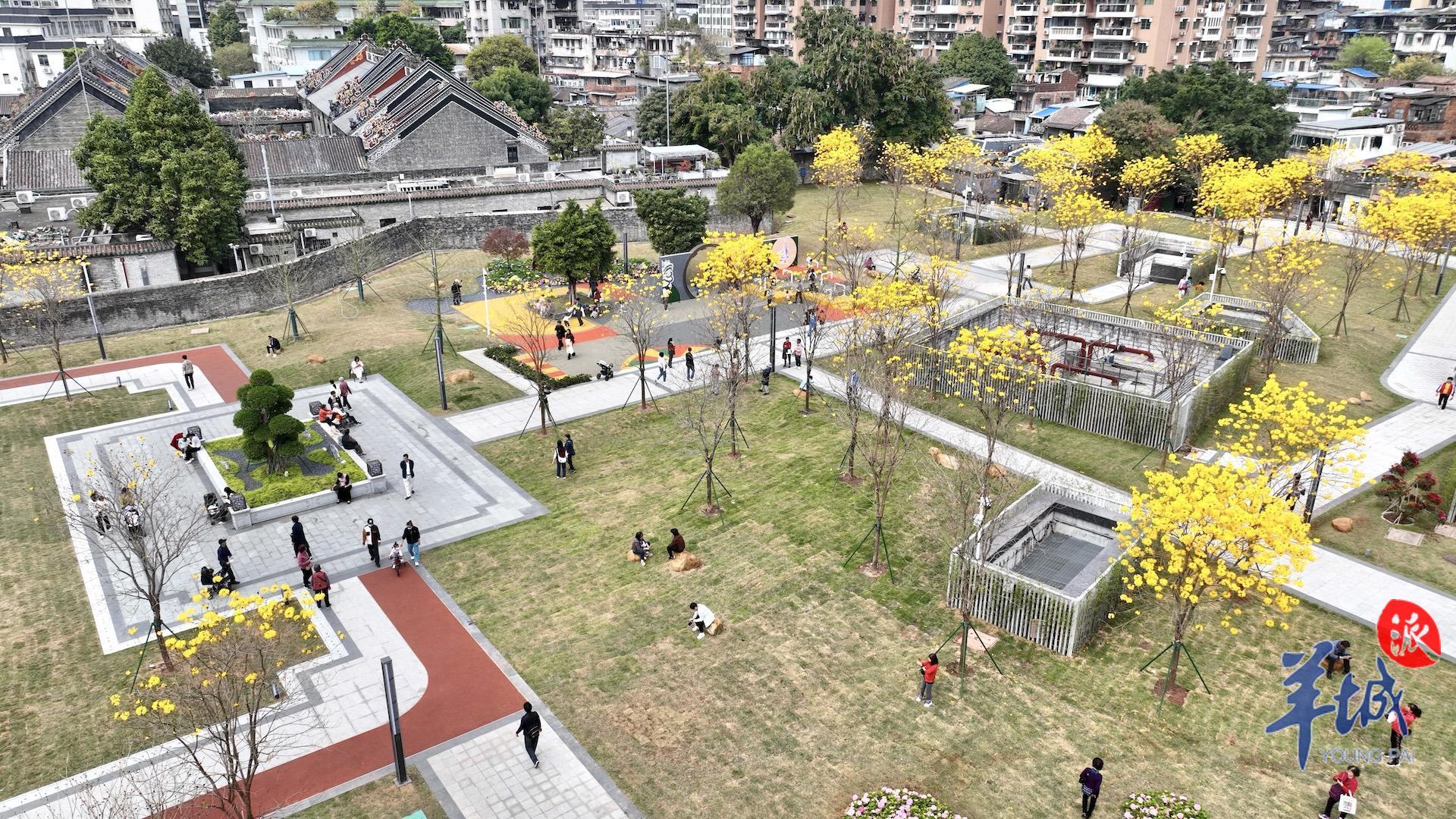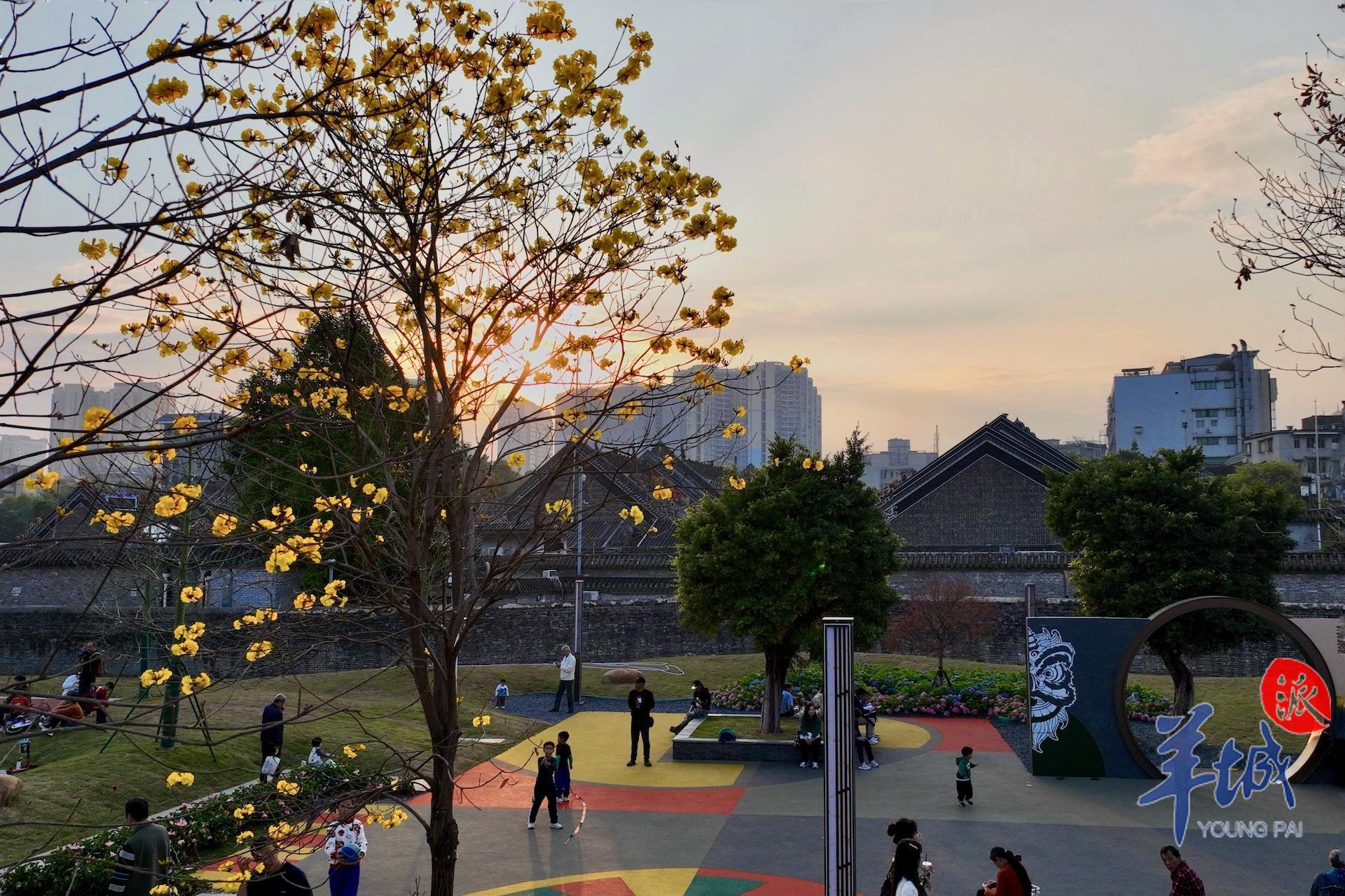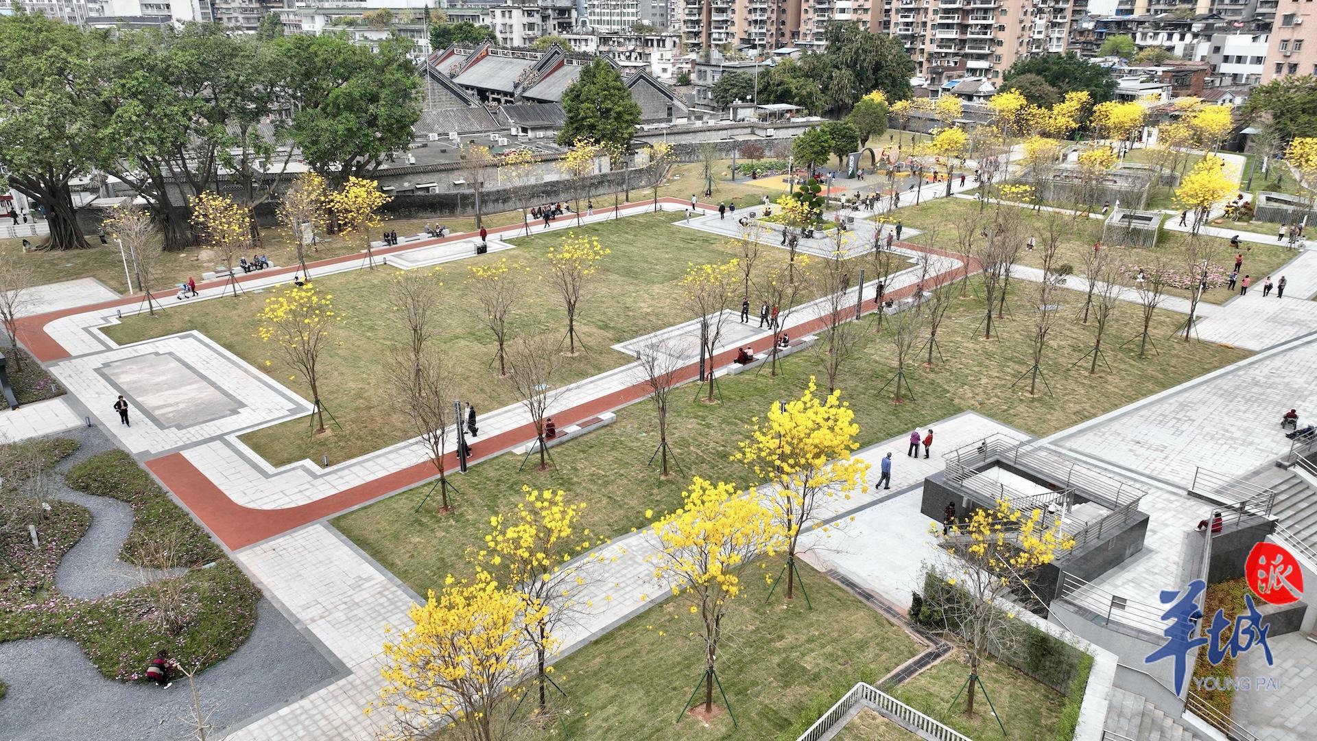 春日到来,种植在陈家祠东广场的黄花风铃木等植物迎来赏花期,以繁花盛开回报等待广场重新归来的街坊。