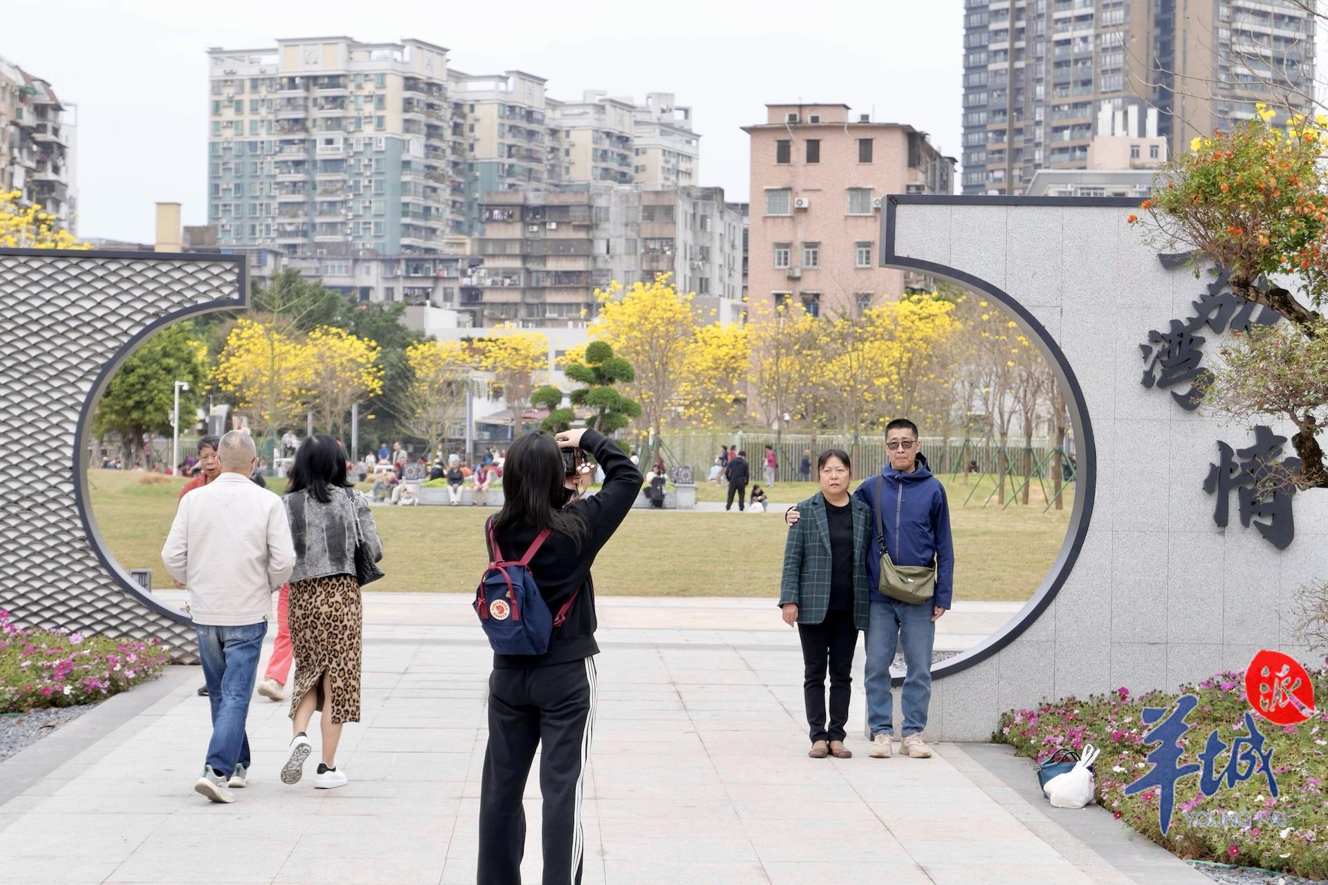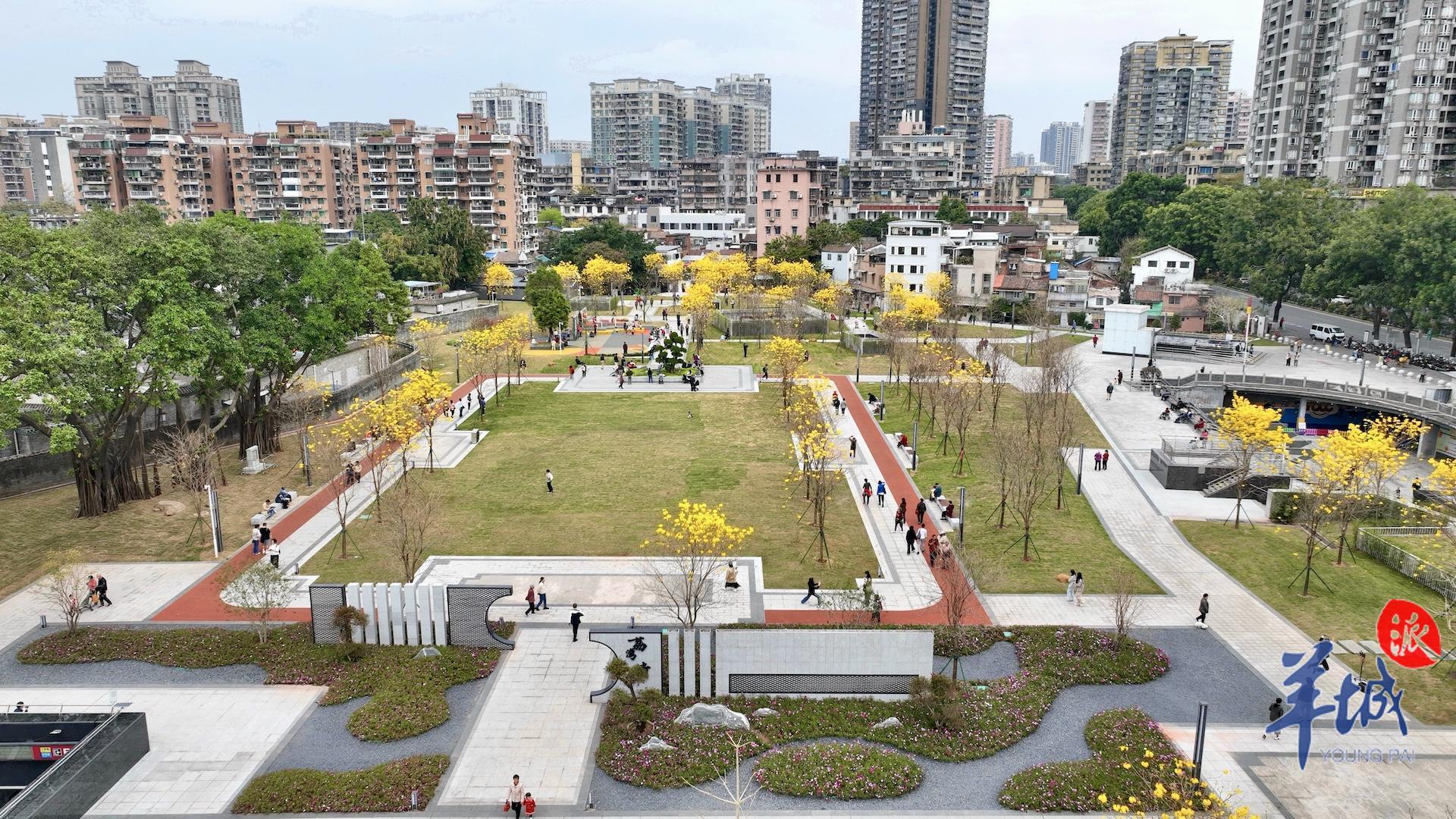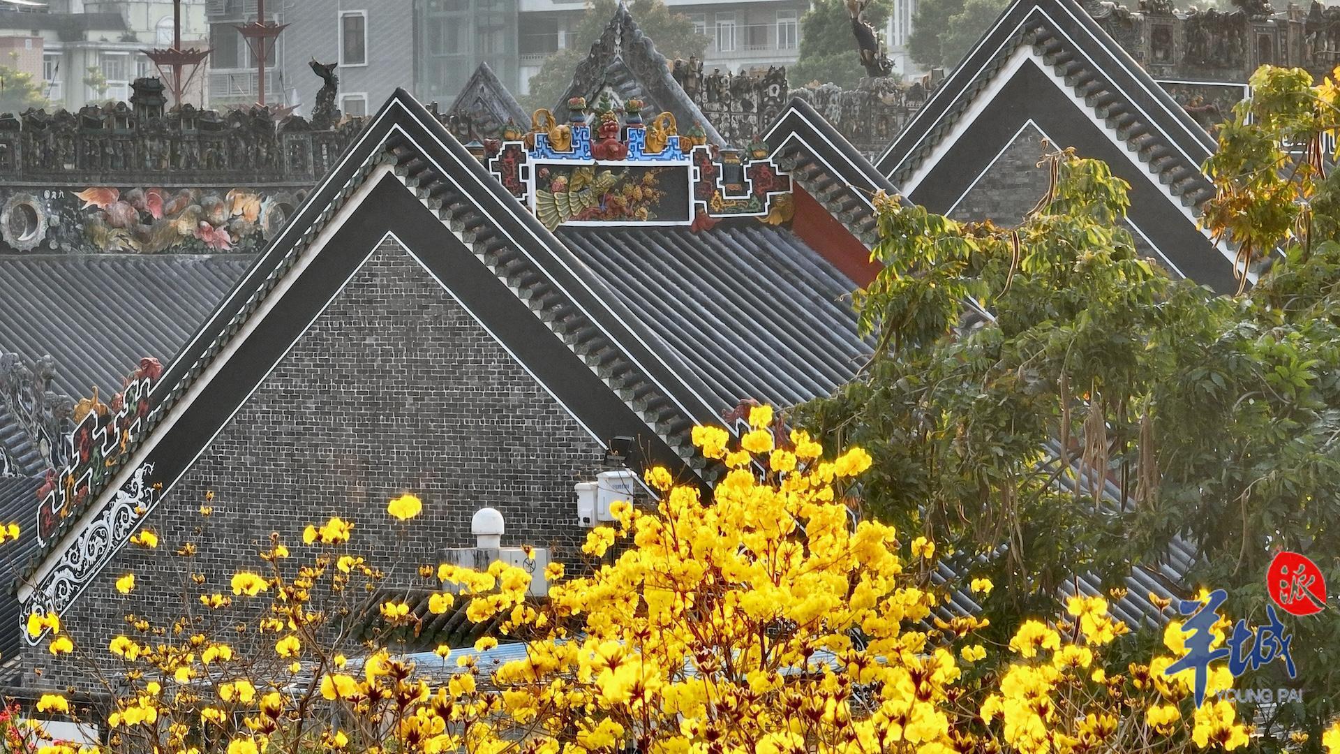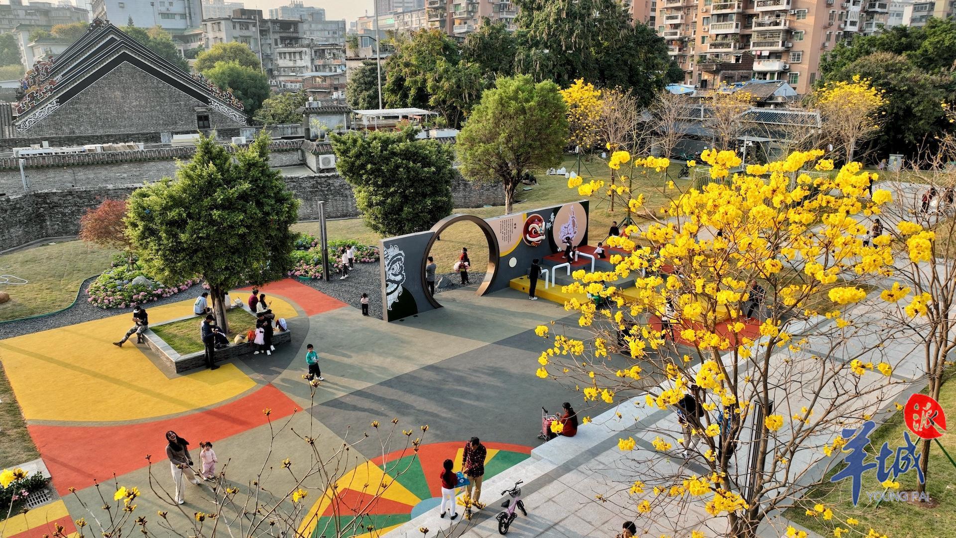 春日到来,种植在陈家祠东广场的黄花风铃木等植物迎来赏花期,以繁花盛开回报等待广场重新归来的街坊。