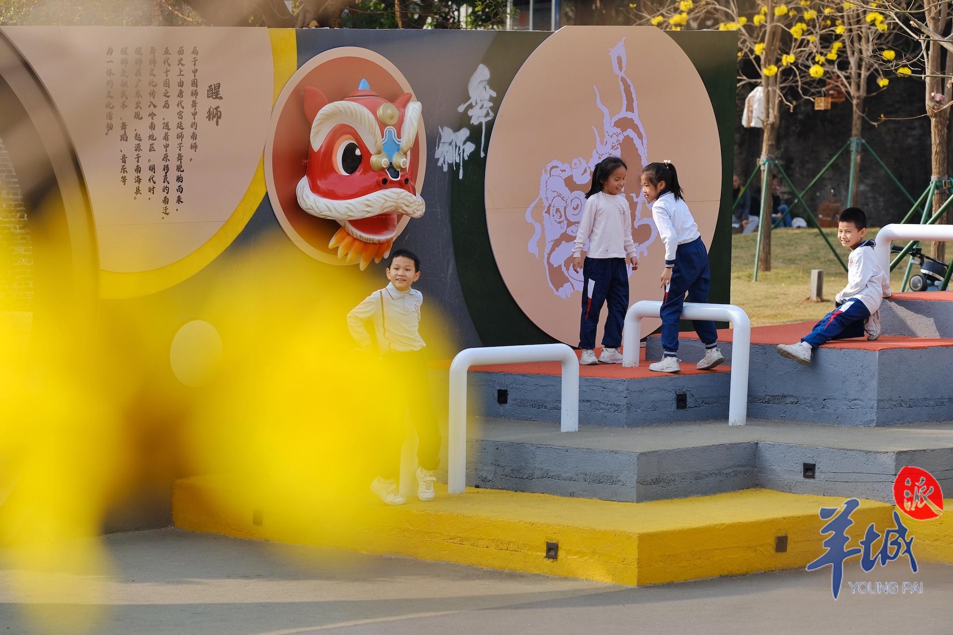 非遗传承展示墙、百家姓展示墙、醒狮体验广场……目前,陈家祠东广场已有不少文化设施上新。