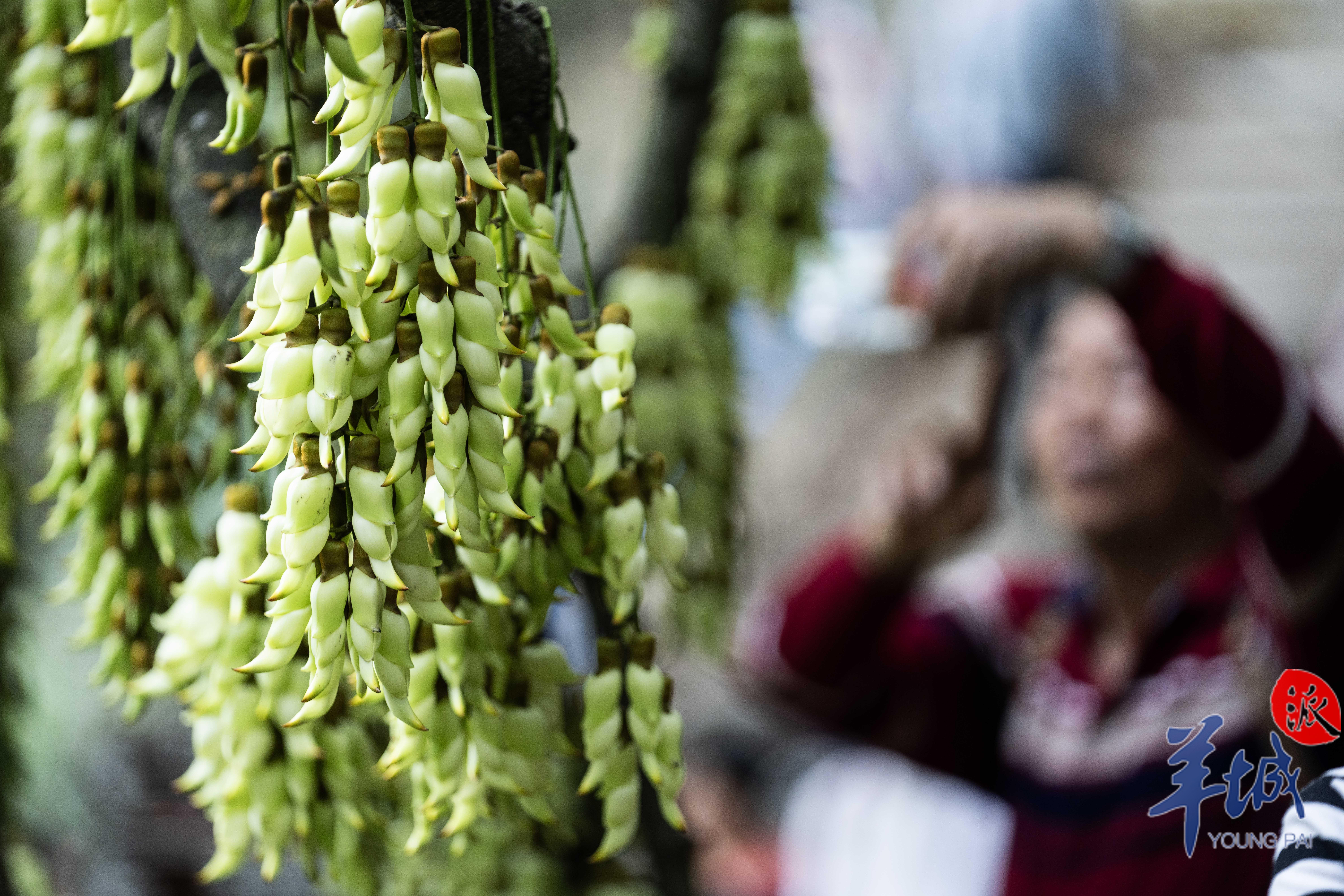 “第一次见到这么壮观的禾雀花群!听说这里的‘千藤闹春’景观有300多年历史,特意带着相机来记录。”守候在禾雀花藤架下的摄影爱好者陈先生连续按下快门。