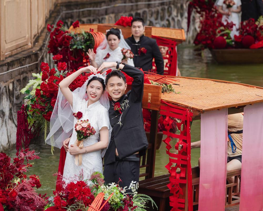 新人们过鹊桥、登婚船,泛舟水上,向岸上围观祝福的人们挥手致意,这是婚礼过程中最具有广东特色的一个环节。广东临海而多水,疍民世代以舟楫为家,婚礼迎亲则以船代轿、颠船贺喜,与大众熟知的陆上婚仪迥然不同,极具岭南水乡特色。